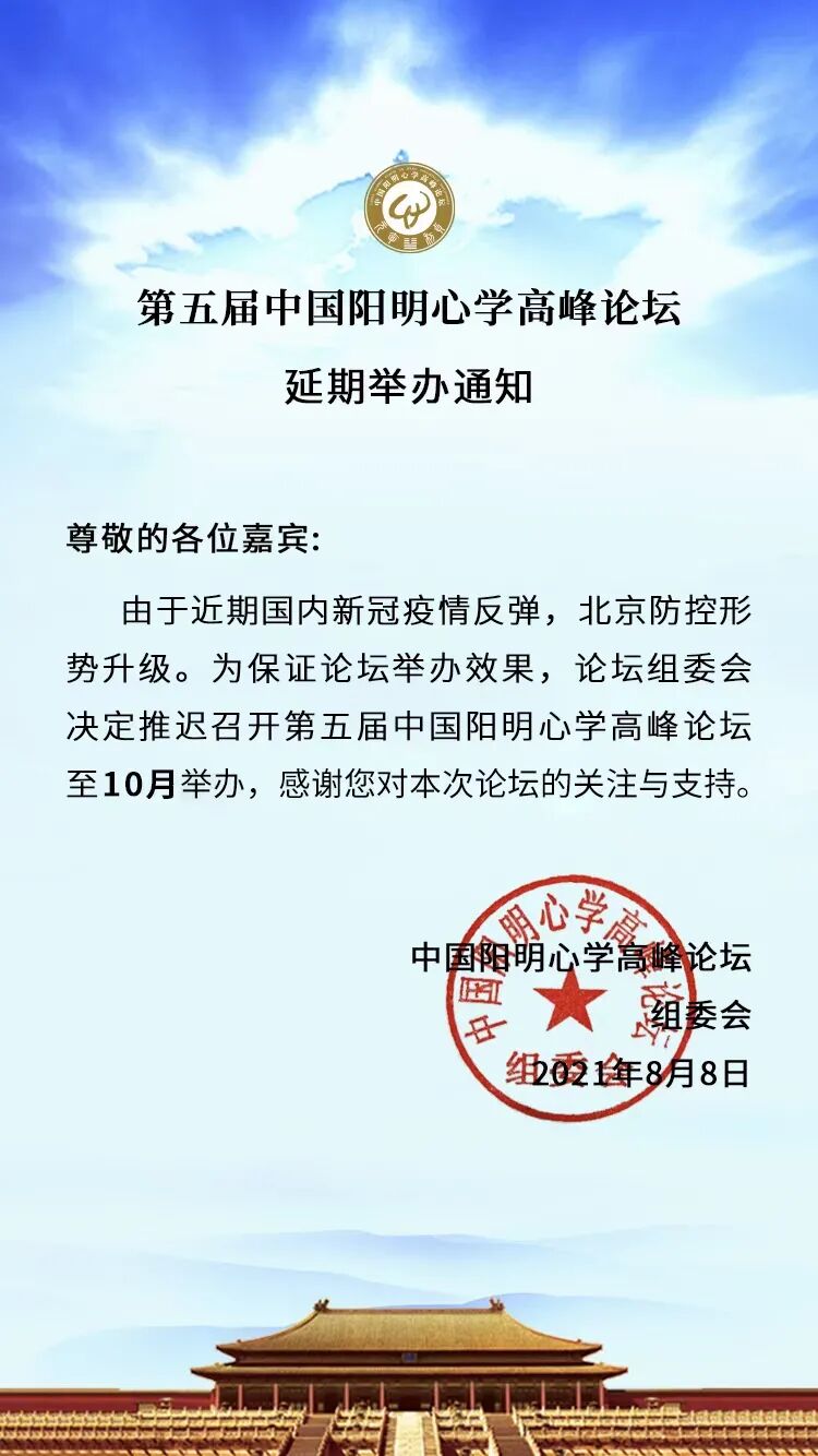 第五届中国阳明心学高峰论坛延期举办!