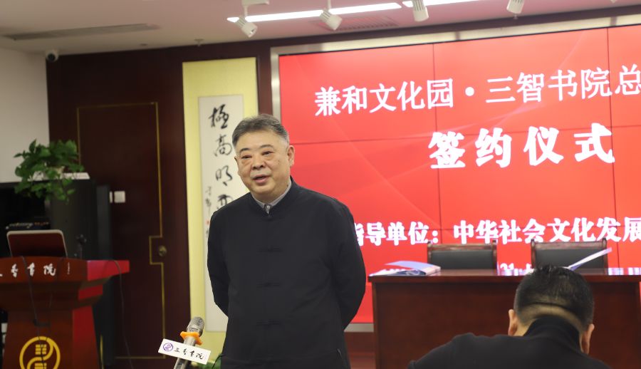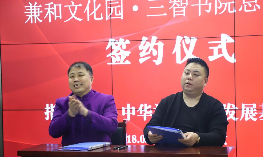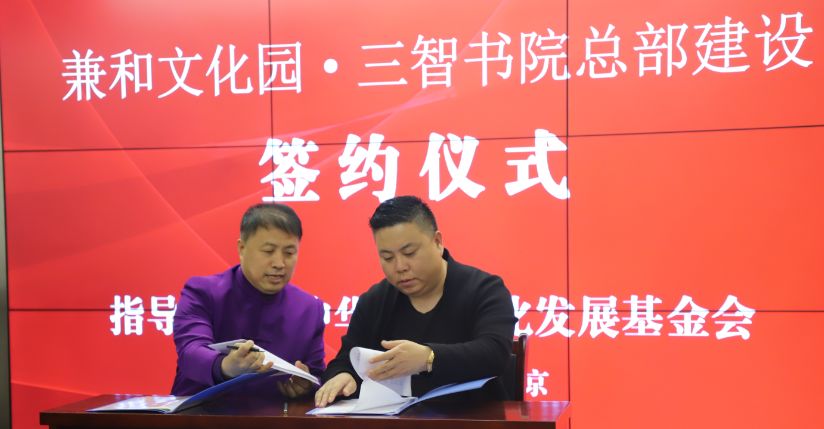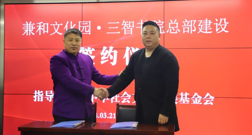 为保护和传承中华文化、传承中华民族传统文化智慧,惠及民族、惠及国家、甚至惠及世界和人类,在中华社会文化发展基金会推动下的兼和文化园规划项目——三智书院总部建设意向签约仪式,于2018年3月21日在三智书院举行。 中华社会文化社会发展基金会主任陈稳先生,昌平区延寿镇海字村书记朱现宝先生,三智创始人、三智书院理事长高斌先生等领导参加了本次签约活动。 中华社会文化社会发展基金会陈稳主任在签约仪式前做了简要介绍。陈稳主任谈到,兼和文化园是经过长达五年的充分论证和筹备,在北京昌平建立的一所占地一万多亩,旨在更好的推动中华传统文化发展的文化园区。三智书院是一所以儒释道等中国传统文化的继承、发扬和弘扬为己任,让更多人践行中国智慧的国内首屈一指的传统文化书院。希望通过这个规划项目,让三智书院入驻兼和文化园,共同见证中华文化的发展和繁荣。 随后,昌平区延寿镇海字村朱现宝书记和三智创始人、三智书院理事长高斌上台,在众多师生的见证下进行了签约仪式。 此次签约,意味着中海银杉(北京)投资有限公司、北京市昌平区延寿镇海字村村民委员会、北京市昌平区延寿镇海字村股份经济合作社与三智书院,在后面的时光中展开更加紧密而有效的合作。期待三智书院总部能够早日在昌平兼和文化园落地建成,以更加完善的三智书院,在昌平风景如画的景致中情景合一,为更多人带来儒释道、天地人、真善美和合的传统文化精髓的传播和弘扬。
